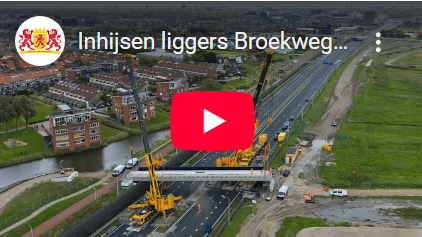 Het nieuwe Broekwegviaduct over de N206 krijgt steeds meer vorm. Op maandag 6 oktober zijn de bijna 50 meter lange betonnen liggers door aannemer Boskalis op hun plek gehesen. Dit hebben we vastgelegd op film.